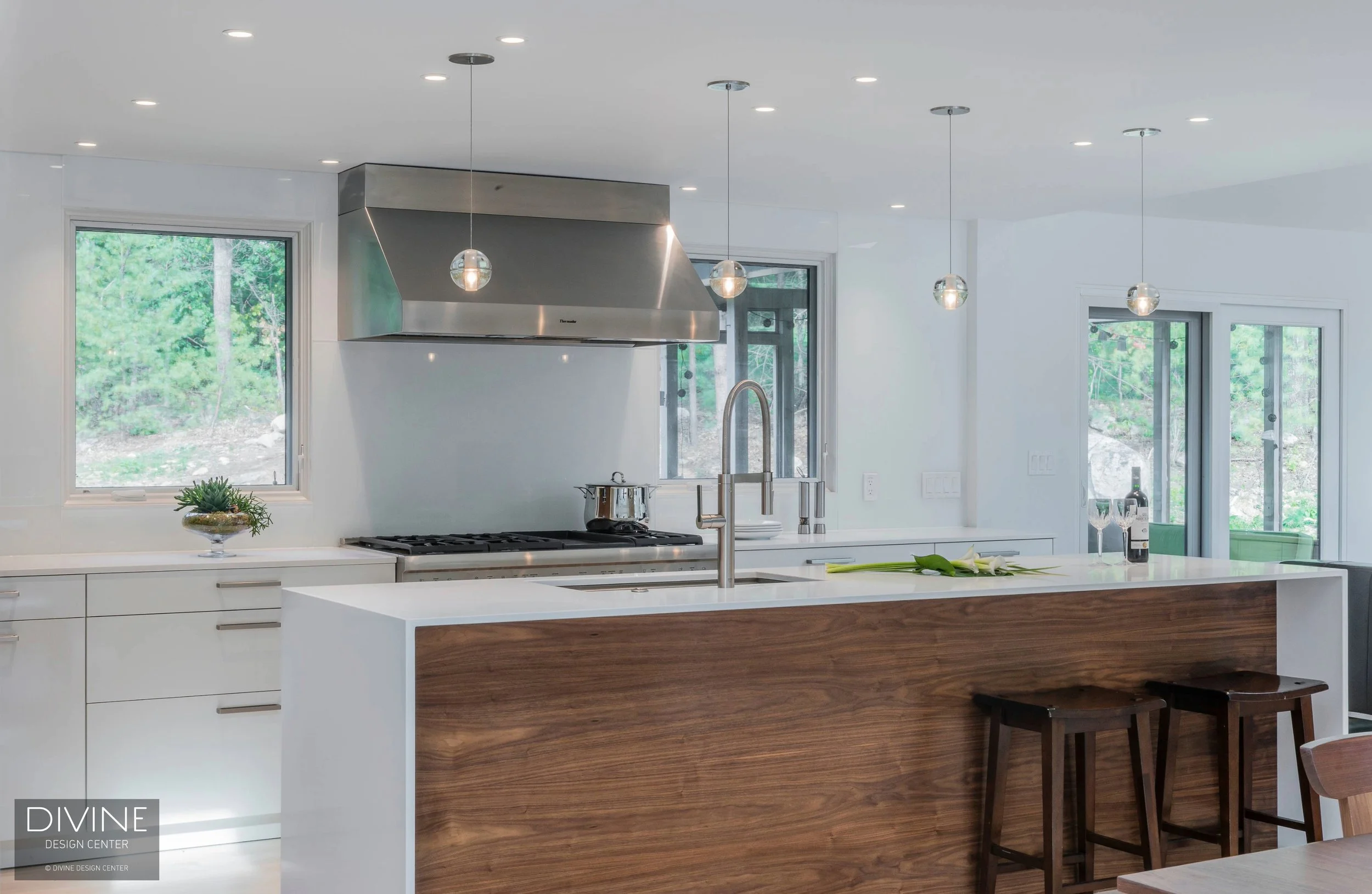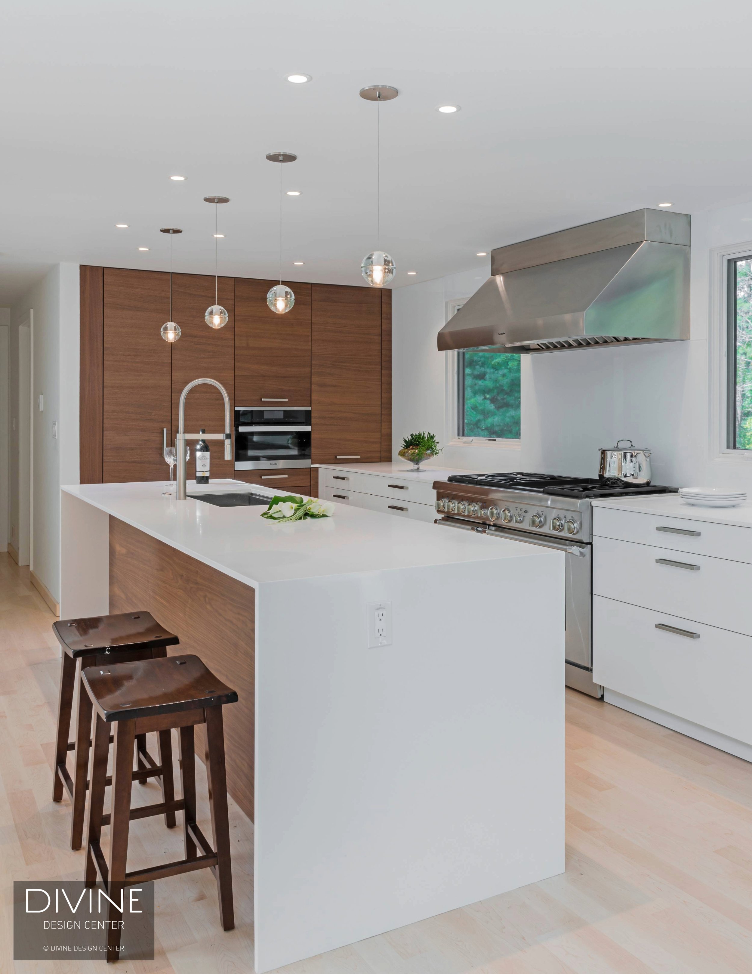 White & Wood Accented Modern Kitchen in Bedford, MA
